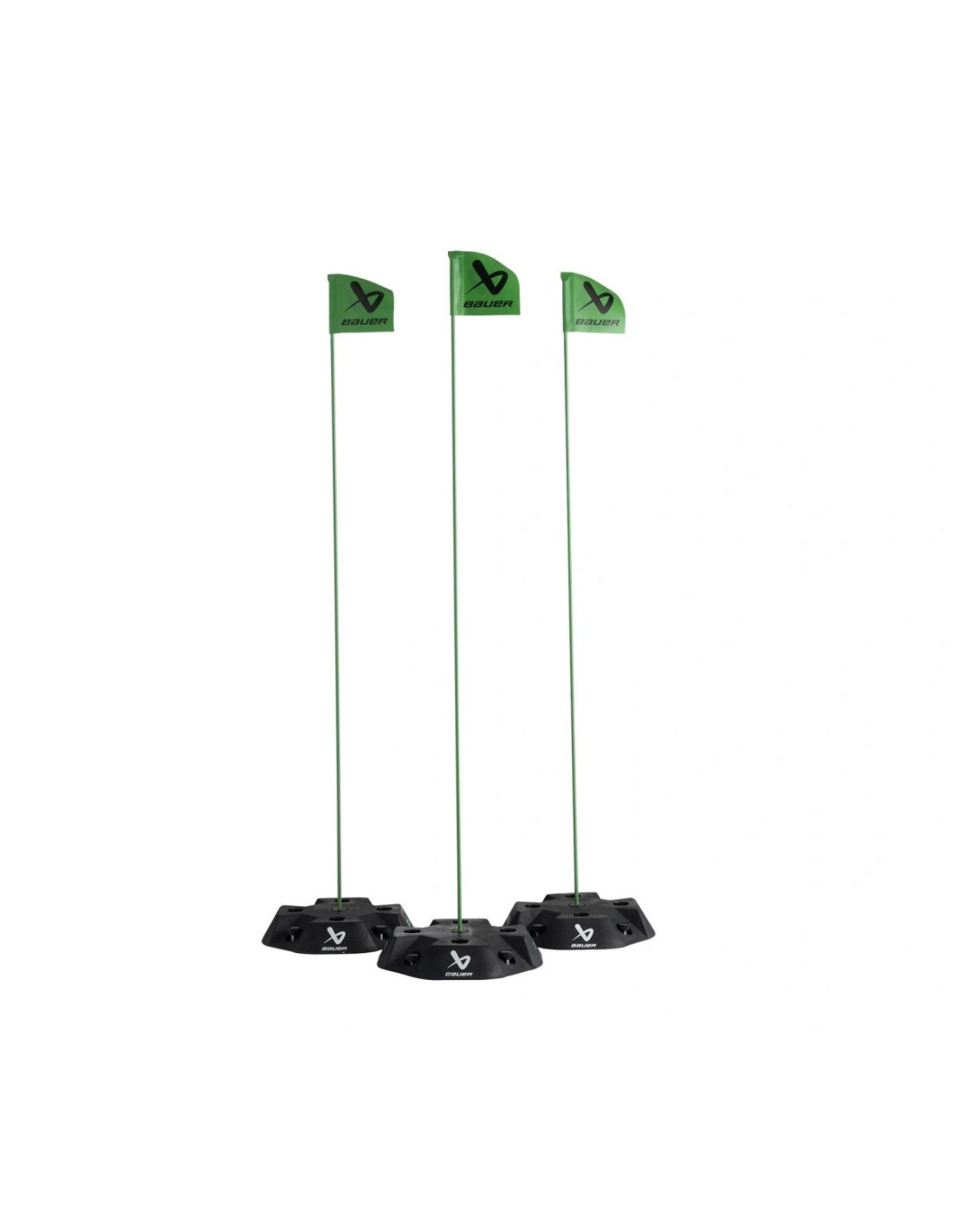 Los banderines Bauer forman parte del nuevo centro de entrenamiento modular de Bauer. Tiene múltiples aplicaciones, como la creación de circuitos de patinaje y ejercicios. Cuenta con un diseño flexible que se dobla al impacto y están fabricados con plástico resistente, ligero y duradero. Es una herramienta de entrenamiento versátil con múltiples usos y se puede utilizar para diversos deportes en cualquier superficie, tanto en interiores como en exteriores.