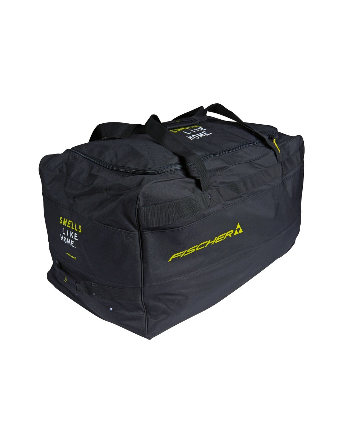 La bolsa de portero Fischer ruedas JR de tamaño completo. Dos ruedas resistentes, dos bolsillos internos en los extremos, bolsillo interno para objetos de valor, parte superior con forro de malla, estructura de poliéster 600D, ojales de ventilación y cremalleras resistentes proporcionan un almacenamiento duradero del equipo, ventilación y fácil transporte.
